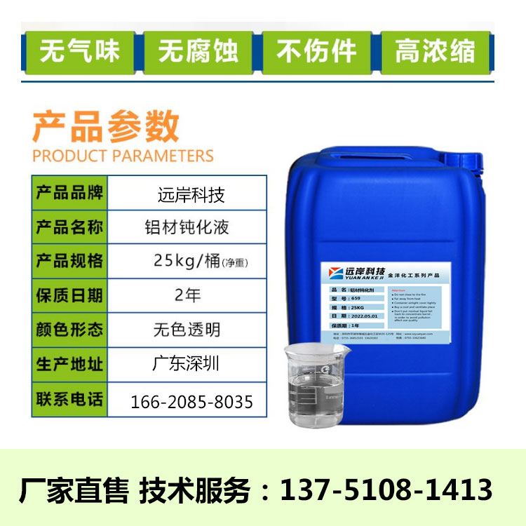 AL659鋁材無鉻鈍化劑是環(huán)保型產(chǎn)品,由有機(jī)酸、氧化劑、絡(luò)合劑、添加劑等原料反應(yīng)合成,適用于各類鋁制品及含鋁制品的鈍化處理,包括鋁合金、壓鑄鋁、鋅合金等材質(zhì);鈍化后中性鹽霧測試可達(dá)48小時(shí)。